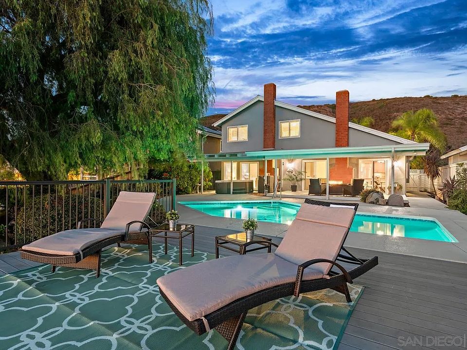 Will not last! Savor breathtaking sunsets and sweeping views that stretch to the Pacific Ocean. With a sparkling pool, expansive deck, and endless space to entertain or unwind, this home offers a priceless lifestyle. Beautifully remodeled, it features a grand entrance with soaring ceilings, a chef’s kitchen, and a spa-inspired primary suite with cozy fireplace on the ground floor . Step into the backyard sanctuary, where pathways wind through mature trees, fruit trees, and the soothing sounds of songbirds. Nestled in the coveted Rancho Peñasquitos community within the award-winning Poway Unified School District, you’ll enjoy miles of trails at Black Mountain Open Space Park, family-friendly parks, and nearby shopping, dining, and entertainment. Minutes from top-rated schools and with quick access to I-15 and Hwy 56, the location offers both convenience and adventure—plus more than 40 wineries just a short drive away. A rare opportunity blending natural beauty, modern comfort, and community convenience—this home is truly a must-see! Additional features: Paid off solar, roof from 2019, tankless water heater, newer HVAC