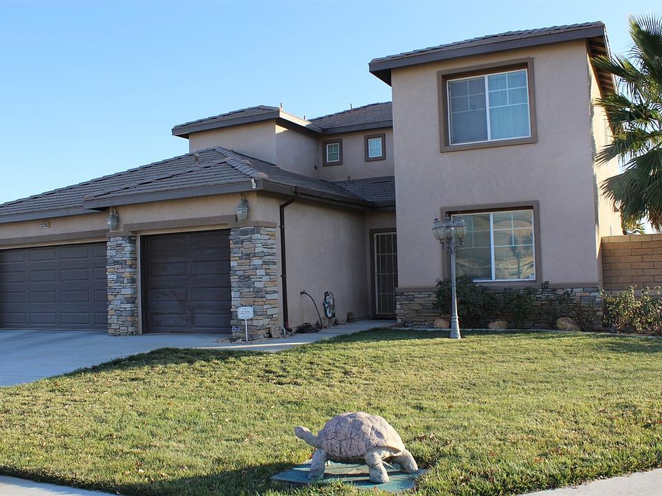 POOL HOME!!! THIS IS THE ONE TO CONSIDER HOME!!!!, DON'T LOOK ANY MORE....... Really nice well kept almost 2800 sq ft of living space. That features 4 bedrooms and 3.5 baths with a bonus room that can be a 5th bed or game room, two masters one upstairs and one downstairs, a formal dining room and formal living room, family room with a gas insert fireplace, in house laundry room with a laundry shoot from upstairs master closet, laminent wood floors and carpet, newer kitchen with corian counter top, tile roof, 3 car garage with a garage door to the backyard, covered patio, solar heated in ground pool and jacuzzi. Two Sheds in the backyard NO MELLO ROSS OR HOA.... pride of ownership