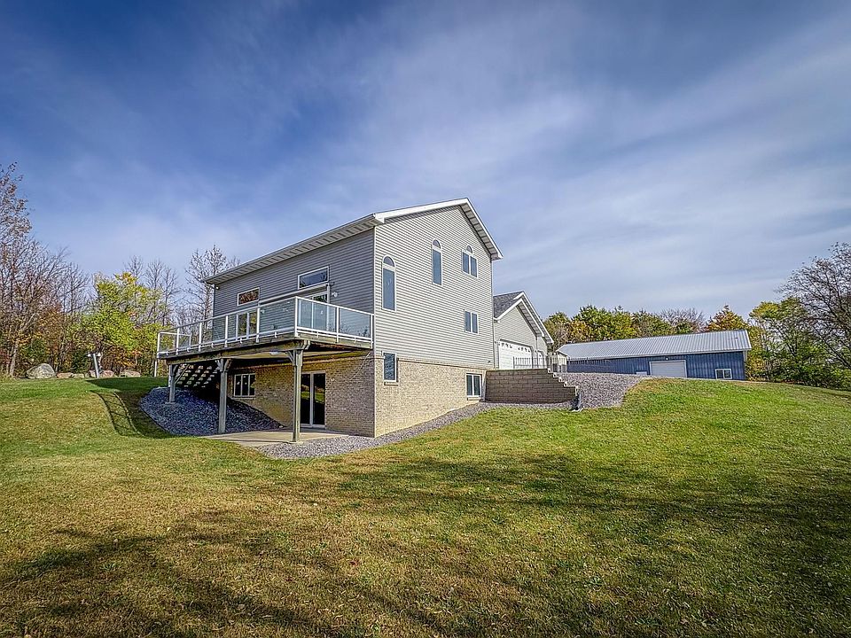 Outdoors, the lifestyle options are endless: hunters paradise, or explore the wooded trails, watch wildlife, or take in serene pond views from the expansive deck. A massive 52x60 outbuilding with 3/4 bath (half heated with in-floor heat, half cold storage) opens possibilities for hobbies, workshop, or business use-while the attached 3-stall garage adds even more function.
