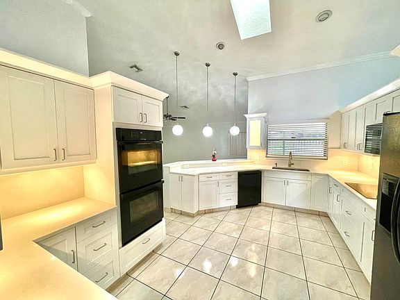 Superb 4 Bedroom 3 Bath Greenview Shores Home! Great Split Floor Plan. Kitchen with GE Smart Double Wall Ovens, Stone look Counters and Soft Close Cabinets including Pot Drawers, Lazy Susan in Corner, Pantry Pull-Outs Undermount Sink, Under Cabinet Lighting and Crown Molding. Kitchen opens to Spacious Family Room with Coral Fireplace and Sliders to Large Covered and Screened Patio. Owners Suite has Slider to Patio, Wood Look Flooring and Large Walk-In Closet. Spare Bedroom Wing includes 3 Bedrooms, all with Wood Look Flooring and Bath with Double Sinks and Tub-Shower Combination with Glass Doors. Formal Dining and Living Room with Sliders to the Patio. Third Bathroom off of Patio with Linen Closet and Shower with Glass Doors. Great Cul-De-Sac Location. Close to Everything. ***Wood Look Flooring and Tile throughout***