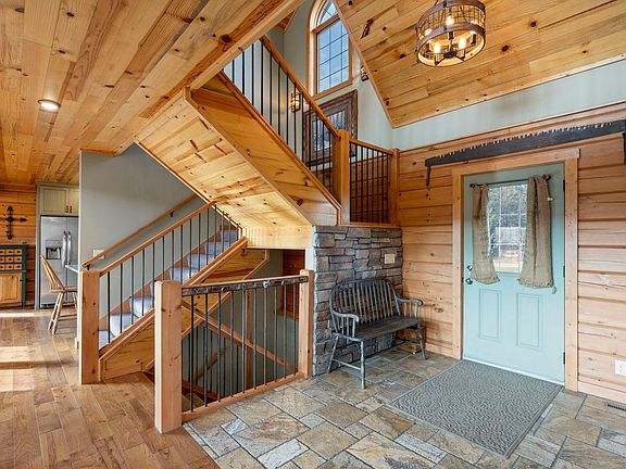 and modern comfort. The open-concept main level features soaring ceilings, a spacious kitchen, and a cozy living area-perfect for gatherings. Enjoy a main floor bedroom and bath for convenience, plus a workspace with stunning views of the property. Upstairs, you'll find two additional bedrooms. Step outside to take in the natural setting, explore the trails, or relax on the deck or porch. Newly built pole building that is 50x40 with overhangs and 40x30 enclosed. Dog kennel attached to pole building stays with the property. Come check it out. No sign on property.