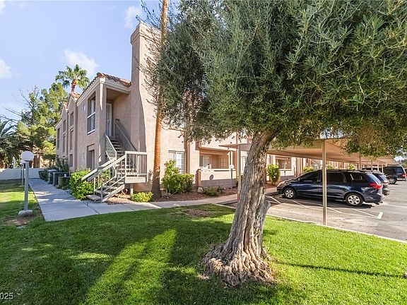 Welcome to this beautifully maintained 2-bedroom, 2-bath condo! Step into a warm and inviting living room featuring a cozy fireplace, perfect for relaxing or entertaining. The spacious primary bedroom opens to a private balcony, perfect for morning coffee or evening relaxation. The kitchen features stainless steel appliances and plenty of cabinet space. Enjoy the convenience of an assigned covered parking space and take advantage of the community’s pool for fun with friends and family. Just minutes from the Las Vegas Strip, the airport, shopping, and dining. This condo offers the perfect blend of comfort and convenience. Don’t miss out on this fantastic opportunity. Schedule your private tour today!