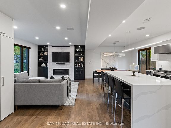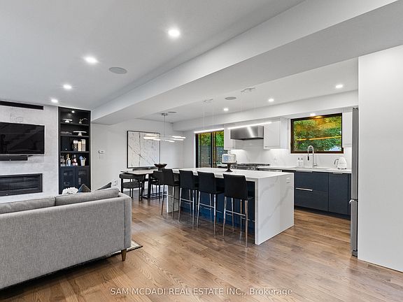 Welcome to 1375 Everall Rd, a modern statement home in the sought-after community of Lorne Park. Every inch of this fully reimagined residence has been designed with intention, delivering refined style alongside the comforts that make daily life effortless. Step inside to sun-filled interiors wrapped in engineered hardwood and porcelain tile across the main and upper levels. The kitchen serves as a true design centrepiece with quartz counters and backsplash, premium stainless steel appliances, and an oversized island that naturally gathers family and friends. The adjoining living and dining spaces are warmed by a gas fireplace and abundant natural light, creating an atmosphere that feels both polished and inviting. Above, the primary suite is a private escape with a spa-inspired ensuite featuring heated floors, a luxury you will appreciate every day. Three additional bedrooms provide comfort and flexibility, each with generous closet space. The fully finished lower level extends the living space with insulated luxury vinyl plank flooring, a spacious recreation room, laundry, and a dedicated office that can easily function as a fourth bedroom or guest suite. This home is as forward-thinking as it is beautiful. It is fully Smart Home enabled, giving you control of lighting, climate, irrigation, security, and multi-zone audio from your phone. Behind the walls, all-new electrical, plumbing, and HVAC systems. With over $350,000 in renovations, this residence delivers the kind of peace of mind today's buyers demand. Outdoors, the pool-sized lot offers both privacy and possibility, framed by mature trees, a sunlit deck, and custom stonework that elevates the curb appeal. Set in one of Mississaugas most coveted communities, you will be only a stones throw away from top-ranked public and private schools, GO transit, Port Credits boutique shops, dining, and amenities.