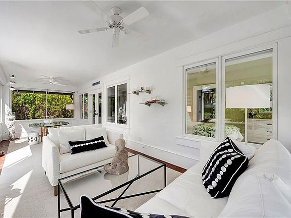 AVAILABLE SEASON 2026 this HISTORIC OLD NAPLES home is in the heart of the3rd Street Shopping District. This recently remodeled property on Gordon Drive near 3rd Street South has a Cottage with 3 sleeping rooms and a one-bedroom cabana joined by a large wood-deck with multiple seatings areas for outdoor dining, conversation or taking in the afternoon sun. The Cabana is for a party of two and includes a bedroom with a king bed, a full bath with a walk-in shower, a morning kitchen, and an expansive living area with high ceilings, and a large wall-mounted TV. The Cottage itself has 2 suites: the primary suite with a king bed and full bath, and a secondary suite that is furnished with a full-size bed, a queen bed, and a shared bath. The Cottage has a full kitchen, a dining area, a large living room as well as a screened patio with another table and seating area. Lounge by the lusciously landscaped lagoon/ plunge pool where you can cool off with a quick dip after a full day on the beach. Or take in the sights on 3rd Street, famous for its shopping, dining, and people watching.