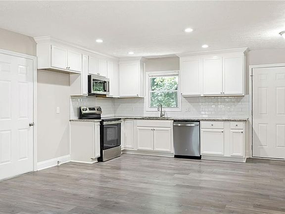 Beautifully renovated home in Jonesboro! This adorable home offers 3 bedrooms, 2 full bathrooms, and a large garage. If you don’t immediately fall in love with the cute rocking chair front porch, you most certainly will when you enter into the large living room that is open concept to the brand new kitchen. The kitchen includes new cabinets, new quartz countertops, and new stainless steel appliances. From the living room there is access to the garage and laundry room, and the back patio. Down the hallway you’ll find 2 generously sized additional bedrooms with new carpet, and a large full hall bathroom with a new vanity. The master bedroom has new carpet, and a beautifully renovated en-suite bathroom that features a new vanity and tiled floor and shower. This gorgeous home has an amazing backyard making for a serene and private space to enjoy with family and friends. Don’t wait, come and see this Jonesboro beauty today!