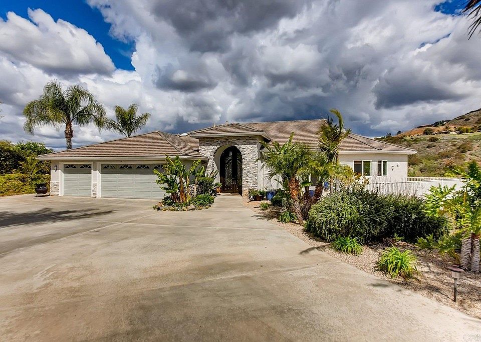 PRIVACY, VIEWS,BEAUTIFUL ARCHITECTURE, POOL/SPA AND A LARGE DETACHED RV BUILDING! SOLAR FOR THE POOL AND SOLAR FOR THE HOME. This home lives like a single story with the primary living areas on the entry level, 3 bedrooms and 2 bathrooms, kitchen and living/family great room! Home is decorated with the latest in granite counters and quality flooring. There is a VERY HIGH QUALITY out building for RV, large boat, motor cycles, quads and more! This building is approximately 100 feet from the home structure and down the slope a bit so as to NOT affect the home! This cost more than $200,000 to build! You enter this home through two gorgeous custom doors! Once inside you are met with stairs that take you to the recreation room downstairs! There is an office area and a second master bedroom next to the recreation room. Be sure to check out the gorgeous custom stair railing that leads to all that is below!! As you turn to the right your eyes are pulled upward to enjoy the OCTAGON CEILING WITH A 20 FOOT HIGH APEX. This is the result of the most unique octagon shape of the combo family room and kitchen. There is an upscale bath added to the downstairs master. There is carpet ONLY in the bedrooms for a soft bare feet walk. The bathrooms have Travertine flooring. The majority of the home has sculptured engineered wood. Central AC and propane gas heating!