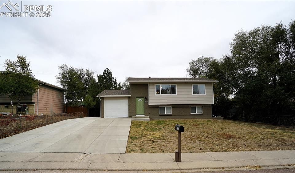 This turnkey property offers 3-bedrooms 2-bathrooms with a 1 car oversized walk out garage on a large lot. Open floor plan with views of Pikes Peak and the Rocky Mountains from your living room windows. Enjoy plenty of natural lighting with amazing views! Updated kitchen with ample cabinets/pantry and countertop space with new appliances. Walk out from your upper level to your massive privacy deck to a fenced rear yard with detached shed. Updated bathrooms with beautiful tile and newer carpet throughout! Updated furnace and a new radon system! Newly poured concrete driveway for RV/Boat/trailer or extra car parking. Great location close to FT Carson, schools/shopping and just minutes to the I/25 corridor.