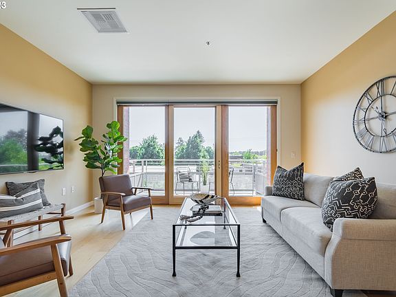 "The Tate" is not only situated in a prime downtown location, but is quite possibly Eugene's finest luxury condo building! Units don't come up very often, so don't miss your opportunity to own this one. From the moment you step in the door, you'll notice the abundance of natural light. This unit has been meticulously cared for and boasts gorgeous white oak style floors, a spacious kitchen with granite counters and stainless appliances, and two large bedrooms. The primary suite has double closets and a full bathroom featuring modern tile floors and counters. Morning coffee or city nights can be enjoyed off the covered balcony or spend time in one of the common spaces offered which includes an outdoor patio and indoor gaming room. If you're looking for a place where your neighbors feel like family, look no further! Call your broker to view today.
