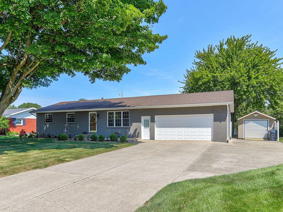 This beautifully maintained 3-bedroom, 2.5-bath brick ranch offers style, comfort, and thoughtful upgrades throughout. Step inside to find freshly refinished red oak hardwood floors, new custom trim, solid core doors, and fresh interior paint throughout. The stunning kitchen, designed by Priebe's Woodworking, features a cozy island, stainless steel Whirlpool appliances, and a functional open flow.