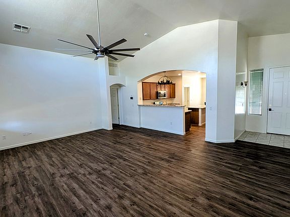 Spacious 3 bedroom, 2 bathroom home located in Rancho Del Lago. Vaulted ceilings, open kitchen, covered patio and split bedroom, great room floor plan. Walking distance to golf, jogging/walking/biking paths, lakes, community clubhouse, and restaurant with large, open patio! Located in Vail School District. SOLAR is $100 charge on top of your rent.