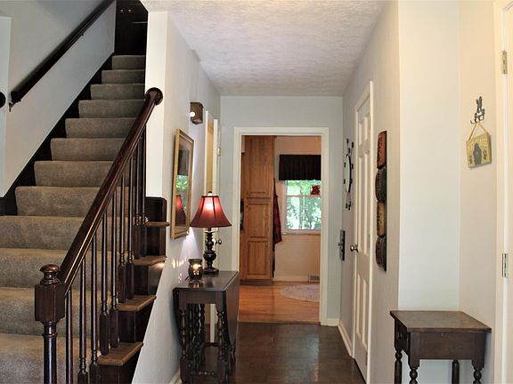 Nestled in the tress on over an acre lot, enjoy the park like setting from the large front porch or the screened back porch. Traditional floor plan offers both formal and informal dining and living spaces. Formal Living & Dining Rooms, Nice Hardwood floors. Family room with wood burning fireplace opens to Kitchen and eating area. Stainless steel appliances. 4 Large bedrooms and 2 full bathrooms up. Additional living space in lower level. Screened in Porch overlooks the spacious back yard with Large shed, fire pit and trees. New Roof 2017 Rebuilt Chimney 2017 New Insulation 2018 New Furnace 2018 Whole Home Humidifier 2018 Basement Foundation Fix 2019 Reverse Osmosis Filter 2017 RV / Shed Power 2019 (RV Power Pole 2 - 30 amp plugs and 2 - 20 amp plugs) New LVT Basement Floo