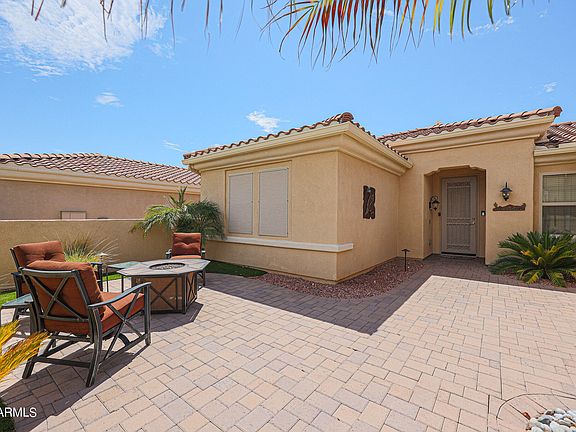Beautiful courtyard greets you as enter the property, perfect area for relaxing with morning coffee or evenings around the fire-pit. The interior of the home is comfortably and tastefully furnished, with tile floors throughout. Kitchen has granite countertops and SS appliances. Large Primary bedroom incls an ensuite with double sinks and walk-in closet. Nice size guest bdrm and separate den office. Backyard is private with plenty of lush landscaping, a fire pit and BBQ Grill. Amenities GALORE in the PREMIER community of Corte Bella and includes golf, tennis, a swimming pool, pickleball etc with a variety of clubs and activities to meet a large array of interests and social opportunities.