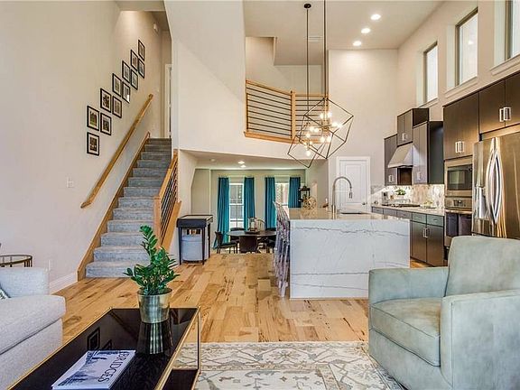 Conveniently includes: Fridge, washer, dryer, living room TV + sound system, and two rooftop deck TVs. Modern luxury townhome designed for both style and comfort with downtown views. This 4 bedroom, 4.5 bath home for lease is filled with natural light, high ceilings, and exceptional finishes throughout. The living area offers a warm and inviting atmosphere with a fireplace and a private balcony, perfect for hosting guests or unwinding in the city's vibrant core. The kitchen has a waterfall island, abundant cabinet space, and high end finishes. Each of the 4 bedrooms includes its own ensuite bathroom, with the fourth bedroom conveniently located on the entry level, ideal for guests. This home has a fully upgraded rooftop deck on the 4th floor, complete with a pergola, outdoor kitchen area, grill, sink, bar area, wine cooler and breathtaking downtown views. Situated just south of Dallas, you'll love the convenient access to shopping, dining, and the DART.