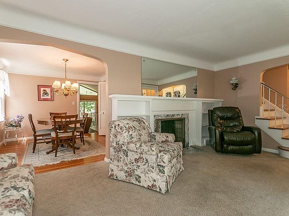 This is truly a special home, The cottage like charm throughout this home extends to the yard with the perennial gardens. Enter and you will find a large living room with a wood burning fireplace, built in bookcase and wood floors under the carpet. You will notice the cove ceilings in this room and the dining room which has the wood floor and a built in corner china cabinet. The kitchen has been updated and has generous cabinet space and a great layout so you can cook up a storm, and all appliances are included. Off the kitchen is a vaulted family room with a wonderful view of the yard. Once you step out the sliders you will not want to leave the over sized vaulted covered porch, sure to be your favorite space all summer long. Upstairs there at 3 bedrooms with wood flooring and an awesome walk up attic, perfect for any storage need. The finished rec room in the basement has a painted wood floor and a non working fireplace , but the warmth of this room would be a perfect man cave/ she shed. The yard is magical from the tree covered driveway to the most amazing flower gardens. This home is truly one of the jewels of the street.
