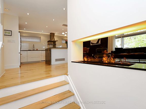 Modern open conceptUnique water vapour fireplaceCustom cabinetryStainless steel appliancesAttractive granite countertopsBirchwood flooringCompletely finished basement