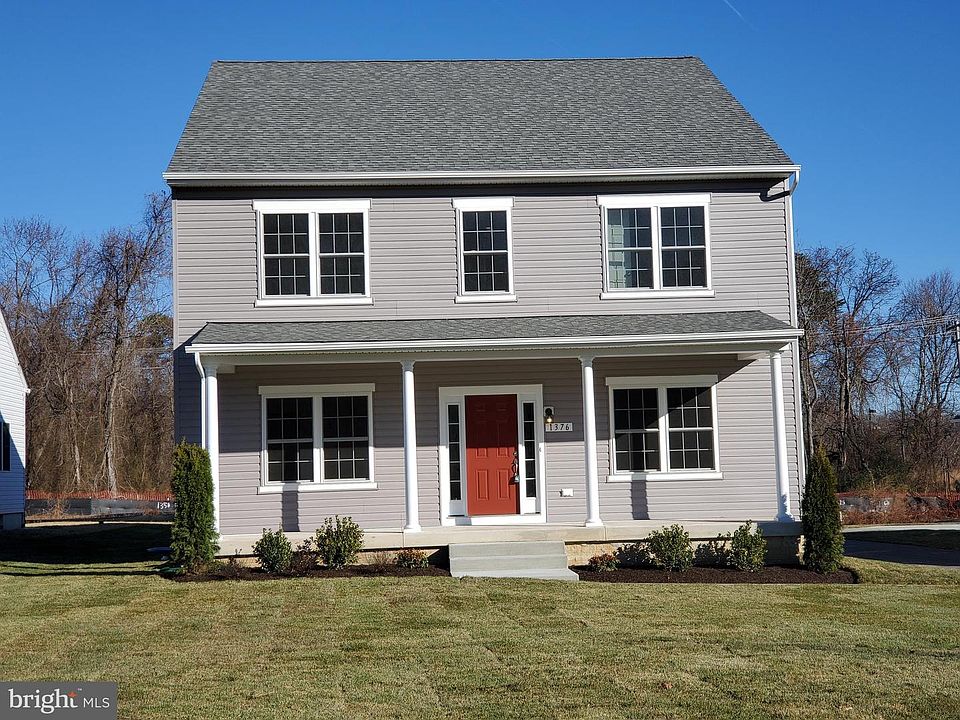 THE "BLAIR" BY BALDWIN HOMES. Colonial Elevation with Full Porch, Kitchen Island, Kitchen Cabinet Upgrade, Wet Bar in Kitchen Breakfast Area, Canopy Hood above Electric Range in Kitchen, Butler's Pantry Cabinet, Close-in study with French Doors, Two Additional Twin Windows on First Floor, Oak Stairs, Super Bath with Corner Garden Tub, Enclosed Toilet Area with Exhaust Fan, Luxury Vinyl Plank Flooring for Foyer, Powder Room, Study, Dining Room, & Kitchen / Breakfast area and Family Room, Master Bedroom and Upper Hallway, Ceramic Tile Upgrade for Owner's Bath, Shower Niches in Bathroom, Finished Basement Rec Room, Basement Full Bath, Basement Bedroom and Basement Media Room.