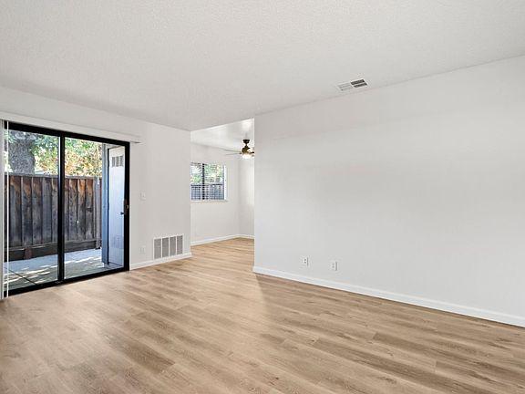 Welcome to 1376 Palm Street, a beautifully updated 1-bedroom, 1-bathroom condo that perfectly blends style and comfort. This 688-square-foot residence boasts stunning vinyl floors and crisp white walls, creating a bright and inviting atmosphere. Step into the airy family room, which opens directly to your private fenced-in patio, ideal for outdoor relaxation or entertaining. The modern kitchen features sleek cabinetry, quartz countertops, and a full suite of stainless steel appliances, complemented by a cozy dining nook. Retreat to the generous primary bedroom with a large closet and a second private patio, perfect for enjoying your morning coffee or unwinding after a long day. The bathroom showcases custom cabinetry, quartz counters, and a stylish glass-enclosed shower/tub combo. Enjoy the convenience of in-unit laundry at your fingertips. Community perks include low HOA dues and a reserved parking spot. Centrally located with easy access to CalTrain and highways 87/280/680, you'll be just minutes from vibrant downtown Willow Glen, local parks, dining, shopping, and Happy Hollow Park & Zoo. Don't miss this opportunity, tour today!