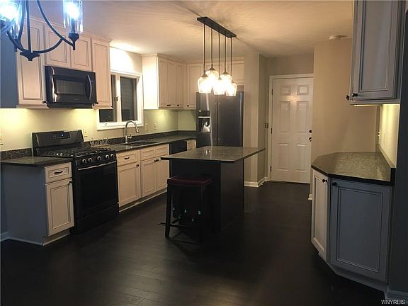 Spectacular completely updated contemporary with 4 bedrooms & 2.5 baths. Steps to Grand Island Middle / High School. Huge master bedroom suite with vaulted ceilings and private bath with large walk in closet. New bamboo engineered hardwood floors throughout. Updated kitchen with custom maple cabinets, large island with seating for 4. Durable quartz counter tops. Brand new kitchen appliances. Stamped concrete patio and large deck off of the dining room / kitchen. Central air. 24' above ground pool with new pump. Fully fenced in yard with large shed. Large driveway with parking area and turnaround.