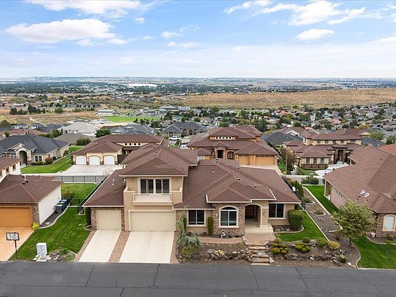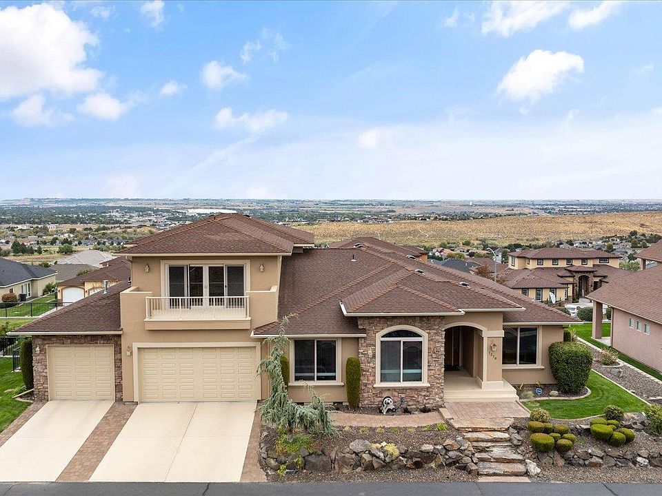 MLS# 287976 Located in the acclaimed Westcliffe neighborhood of South Richland, this stunning home showcases panoramic city and river views and pride of ownership that feels better than new. Inside, you’ll find extensive use of natural wood and tile flooring, granite counters, and an abundance of cabinets, built-ins, closets, and storage. The main living space features a great room design, anchored by a spacious kitchen with upgraded GE Profile and Monogram appliances, gas cooktop, double built-in ovens offering convection, microwave, and steam cooking options, including a seamless flow to the dining and family room. A gas fireplace with custom built-ins and wall-to-wall windows frame the incredible views. You are greeted at the entrance accessing the expansive office/den space with custom cabinetry for convenience and functionality. The owner’s suite is generously sized with a sitting area and a double-sided fireplace shared with the bathroom with heated tile floors, plus convenient access to the laundry/utility room. Upstairs, the versatile flex space offers two separate areas—ideal for entertaining, gym, crafts, or multi-generational living—with cabinetry, wet bar, 2-private decks, fireplace, and more sweeping views. Additional features include LED lighting, surround sound, custom window coverings, water softener, and dual gas furnaces on a maintenance plan. The three-car finished garage boasts epoxy floors, while the exterior offers professional landscaping, beautiful water fall & fountain features, ornamental iron fencing, hot tub, gas BB-Q stays, and multiple patio areas to enjoy the scenery. Check out the professional photography and video.