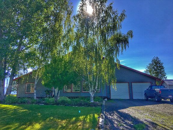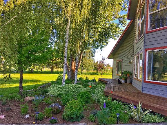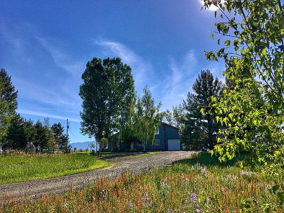 Sunny and spacious home, attached 2 car garage on 4.82 fully irrigated acres. 3 Bedrooms, office and living room PLUS extra bonus room with walk-in closet. Bring your horses and chickens, whatever you like - with no CCR restrictions freedom abounds. Vaulted Master Bedroom with views of West Mountains. Covered back porch looks east across your vast and private property out to Jug and surrounding mountains. Fully irrigated lawn, established flower beds and mature trees. Sale includes 2 lots of 2.4 acres each. House sits on western lot, East lot is vacant with easement access along western perimeter. See documents for plat. Water rights included. Neighboring 4.8 acre vacant lot to the north also available for purchase. See MLS525557