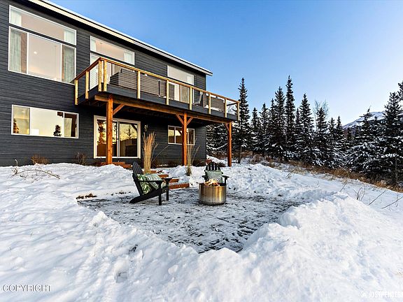 Welcome to this exceptional 2023-built ranch home, designed for comfort, style, and effortless living. Set on 1.5 acres and perched to capture sweeping views of the inlet and majestic mountains, this property offers some of the most breathtaking sunsets you'll ever experience.The main level features a bright, open living space with large windows framing the views, a beautifully appointedkitchen, and a spacious primary suite complete with a private en suite bathroom, soaking tub and walk-in closet. An additional room on this level serves perfectly as an office or can easily function as a second bedroom. A convenient full bathroom is located just across the hall. Downstairs, the walk-out basement expands your living options with three generously sized bedrooms, a full bathroom, a cozy second living area, a dry bar, and a dedicated theater or workout room that's ideal for movie nights, home fitness, or extra flex space. Thoughtfully enhanced inside and out, the seller invested over $100,000 in premium landscaping, creating a truly turnkey outdoor oasis with lush greenery, stonework, and inviting spaces to unwind. Sit by the outdoor fire, take in the endless sunsets or the northern lights, and explore the surrounding area right from your own property. Fresh, modern, and meticulously cared for, this home feels better than new. An incredible opportunity to own a beautifully finished property with room for everyone and Alaska views you'll never forget. Set up your tour today!