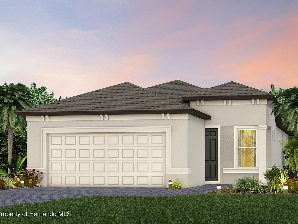 Enjoy all the benefits of a new construction home and experience a new level of retirement living at our newest Del Webb community, Del Webb River Reserve, with a free Golf Cart included. This brand-new active adult community represents everything that your next chapter in life should be about: Finding a place to belong and living life the way you want. Envision a thoughtfully crafted, resort-style residence nestled in nature with expansive amenities and vibrant gathering areas that will foster lifelong connections. This gated, active adult community is located 30 minutes north of Downtown Tampa. Featuring the Contour home design, you'll have the space you need and the finishes you'll love. The designer kitchen showcases an island, stylish white cabinets, 3cm quartz countertops, 9''x11'' tiled backsplash, single bowl stainless steel sink, and Whirlpool stainless steel appliances, including microwave, range, dishwasher and counterdepth refrigerator. The bathrooms have matching white cabinets and quartz countertops, including a walk-in shower and dual sinks in the Owner's bath. There is 9''x36'' tile flooring in the main living areas, flex room baths and laundry room, and stain-resistant carpet is in the bedrooms. Additional features and upgrades include a 2-car garage, convenient laundry room with Whirlpool washer and dryer, LED downlights in the gathering room and lanai, 2'' faux wood blinds, and a Smart Home technology package with a video doorbell. Enjoy peace of mind with Pulte's transferable, 10-year Limited Structural Warranty that covers materials and workmanship in the 1st year, workability of plumbing, electrical, HVAC, and other mechanical systems through the 2nd year, various types of water infiltration and internal leaks through the 5th year, and the structural integrity of the home through the 10th year. Plus, we're currently offering limited-time incentives and below-market rates!