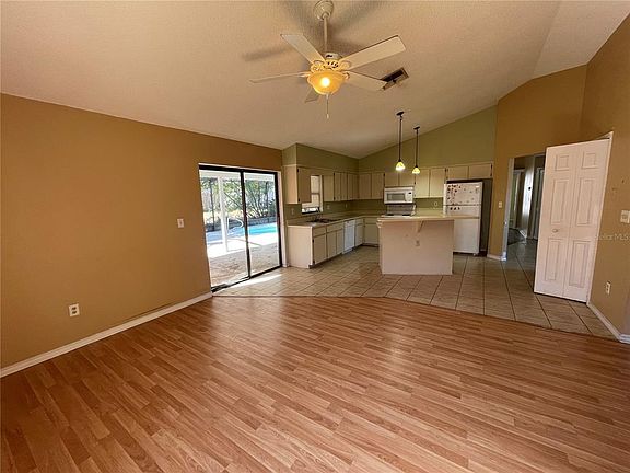 This is a 3/2 home in Spring Hill. Large screened in pool area which is partially covered. . Yard is fenced in the back with good privacy. Home needs new flooring and paint.