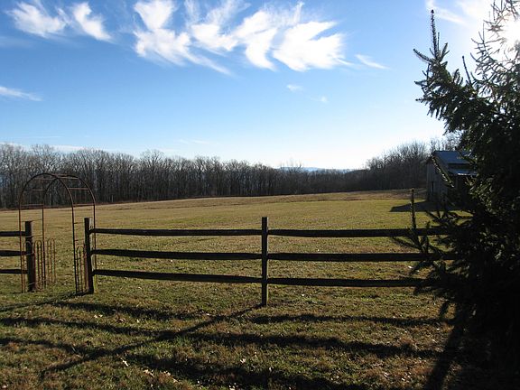 Located atop Warm Springs Mountain on 27+ acres at an elevation of 3,800' with views for 60 miles, this rustic wood-sided custom home contains a total of 2,866 sq. ft. of living space on two levels, with a 1,900 sq. ft. basement, 956 sq. ft. of which is finished. The home, built in 1988, is situated on a level portion of the mountaintop with an open pasture just outside the front door. Thick forest cover surrounds the pasture and home. The gravel drive with entry gate off Airport Road winds its way up the hillside and is paved as it approaches the house. The inviting 2-story living room features a stone fireplace with wood stove insert. The modern kitchen features stainless steel appliances with an adjoining pantry with extensive storage.