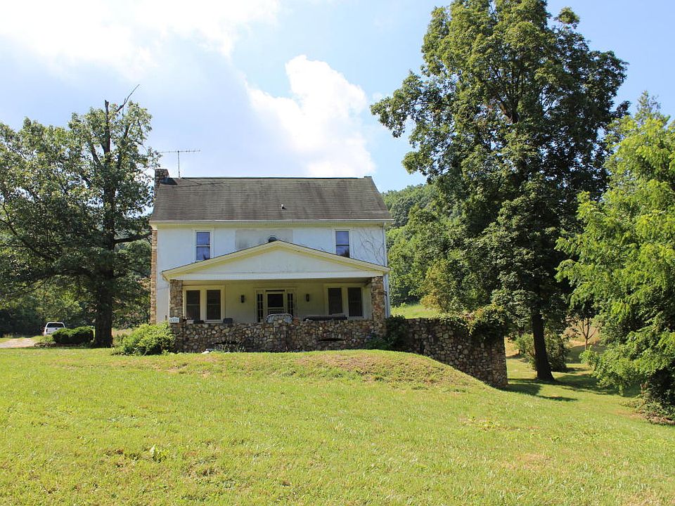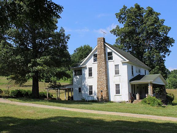 Situated on 17.59 Acres-HORSES PERMITTED..Both Spring & Well Water, 2 Homes..1910 Stucco & Stone Farm House. Covered Front porch w/root-cellar beneath, 2 GARAGES, Horse stalls & Tack Room, PLUS additional 3 Car attached Carport to Main House,Thermal Windows;beautiful HARDWOOD FLOORS in main living area;Foyer,LR w/Stone FP w/forced Air Wood Stove insert;Dining Room,Kitchen,Breakfast area;LL Laundry, LL Fully Renovated Bath w/Heated Ceramic Tile, Jetted Tub, HE Toilet, Electric Wall-unit Towel Warmer, w/Upper level 4 BRS,Sunroom, 1-1/2 BA.Full walk up Attic;Basement;Second home (Guest/In-Law-Quarters)Great room w/Forced Air Woodstove, Kitchen/Dining Area, LR,3 BRS;Bath,Laundry,spacious Office/Den area, 5 ''Frost Free'' Spigots, 4 in fields for livestock and garden and 1 next to garage