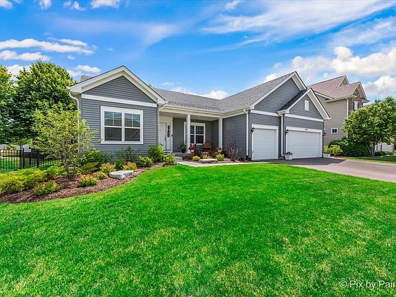 Hello Gorgeous!! This well designed custom Ranch home in Blackberry Creek features 3 bedrooms, an office (or 4th bedroom), 2 full bathrooms, a first floor convenient laundry room, full basement and a 3 car garage! Walking through the main entrance/foyer you will immediately be welcomed into the breathtaking single story ranch home that is very elegantly designed with an open floor plan concept. Follow the entry into a stunning family room that overlooks your private backyard fully fenced with a beautiful brick paver patio, pergola, & professional landscaping. Adjacent to the foyer there are 2 large bedrooms and a full bath. The modern and functional kitchen features a breakfast room, Granite countertops, an over-sized island, gorgeous 42" white cabinets and GE stainless-steel appliances. The dining area is openly situated along the family room providing the ideal layout to enjoy and entertain your guests. Working from home is a breeze with your own private den/office. Finally, the impressive spa-like master suite is privately tucked away for you to relax. It includes a master bathroom with a shower, a private water closet and double-bowl vanity and 2 walk-in closets. The full basement is ready for your finishing ideas and includes rough-in plumbing for a future bathroom. Perfectly located near the Elburn Metra station, Hughes Creek Golf course, I88, schools, shopping and restaurants. Blackberry Creek offers 3 parks, bike paths, ponds, baseball fields, elementary school & more! Quick close ok! $2500 Credit to buyers to use towards closing costs or rate buy down if under contract in September.