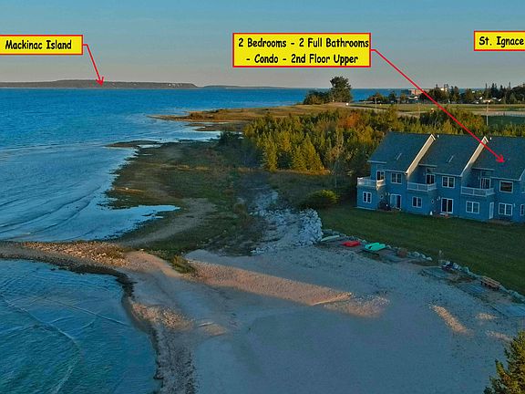 Must see beautiful WATERFRONT condo with breathtaking views of Lake Huron, Mackinac Island, and approximately 300 Ft of natural shoreline. The upper level unit balcony view must be seen to fully appreciate. Offering 1,267 sq ft of living space, the unit offers 2 bedrooms, 2 full baths, and a fantastic open floor plan with killer waterfront views. Offered furnished as shown, just move in, relax on the balcony, a glass of wine, the sound of waves on the shoreline........... what's your dream?