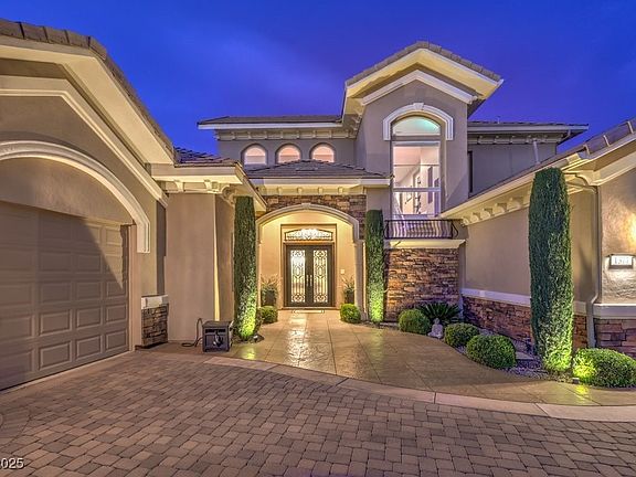 The Sky's the Limit in Seven Hills Estate! This entertainer's dream features guest suites downstairs and a primary sanctuary upstairs with stunning views and city lights. Relax in a luxurious 5-piece bath with natural stone and tile. Enjoy multiple family rooms, a media room with blackout curtains, and state-of-the-art equipment for movie nights or gatherings. Entertain in the elegant dining and living areas with a cozy fireplace, or gather near the gourmet kitchen and family room designed for comfort and conversation. The chef’s kitchen boasts Wolf double ovens, a Decor stove, Sub-Zero fridge, and custom cabinetry. A spacious butler’s pantry adds convenience, while a quiet office space is perfect for work. Outside, unwind in your private paradise with an oversized saltwater pool and breathtaking sunsets. This meticulously designed home offers the perfect blend of luxury, comfort, and functionality. Too many extras to list - Come see for yourself - You won't want to leave!