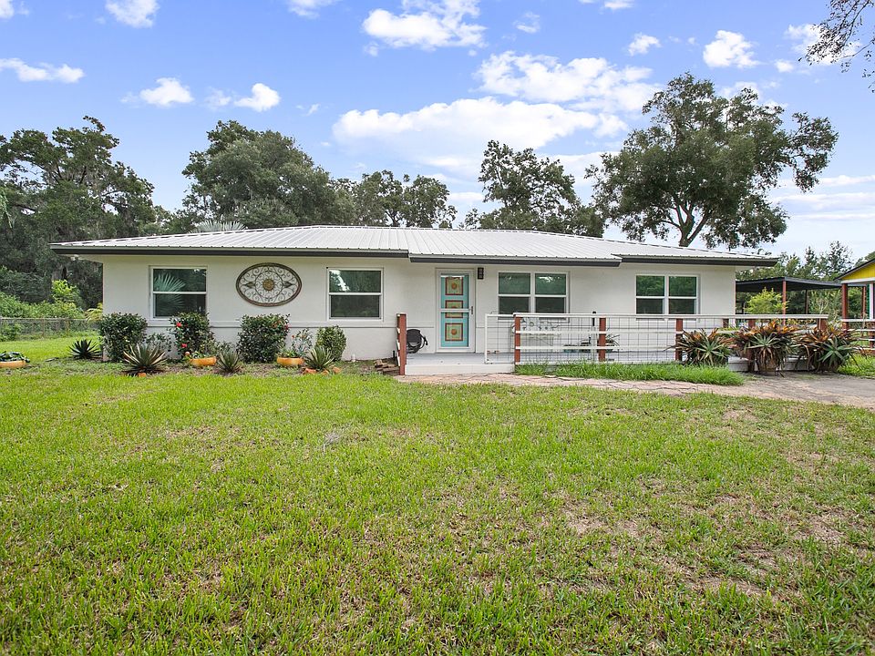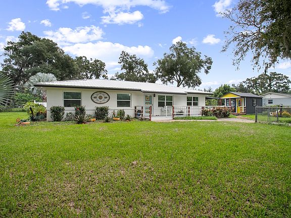 Welcome to your peaceful country escape! This beautifully remodeled 3-bedroom, 3-bathroom farmhouse blends classic charm with modern comforts on just under three-quarters of an acre. Step inside to find a warm and open layout, featuring updated finishes throughout and a cozy bonus room/den, and two master suites. The fully fenced yard offers plenty of room to roam, garden, or simply enjoy the outdoors. You'll also find a detached carport with extra storage space, plus a versatile studio complete with working plumbing and a window unit for A/Cgreat as a guest space, art studio, or workshop. Whether you're entertaining, relaxing, or working from home, this move-in-ready home offers the ideal balance of privacy, comfort, and style. The entire house went under a full rehab in 2021. Some improvements are new Carrier AC and handler, All new duct work in attic, New Blossman Wifi Propane Tank, New gas A/O Water Heater, all new ZLine and LG kitchen appliances, 14 new impact windows with some being tinted and having remote window shades, new water softener system, all new electrical outlets and toggles throughout, all new drywall throughout, ceilings re-textured and painted, new Barnwood flooring, all new baseboards, complete re-pipe, exterior hookup for a generator, 50 amp hookup in carport with RV parking, top of the line ceramic and tile in the bathrooms, new power flush toilets, new glass enclosures for showers, a new custom tub, specialty faucets and cabinets in all bathrooms, rain shower heads in all bathrooms, completely new gourmet kitchen with custom cabinets with glass panel doors and copper handles, new hammered copper sink, new garbage disposal, Edgestart Beverage/Wine Fridge, recessed lighting throughout, new LED ceiling light/fan fixtures. As an added bonus there is a " Tiny House" that has been drywalled, textured and painted, has a cedar wall, electrical, plumbing, and AC!! Exterior has a complete irrigation system with drip lines, a metal perimeter fence, a vinyl privacy fence, a goat fence, lighting at base of fence line, all exterior lighting replaced, all wood/ decks are made with pressure treated wood, new SOD, 6 inch raised flower beds, pineapples, Rose Tree, Agave, Palms, Rosemary, 2 Mulberry Trees and 2 Pomegranate Trees. *All info to be verified by buyer(s)*
