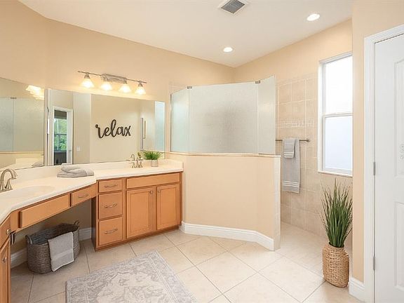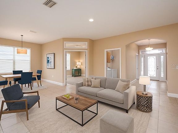 One or more photo(s) has been virtually staged. SUMMERGLEN GOLF COURSE COMMUNITY-LOT 968 Located just a few miles west of 1-75 off HWY 484. 2393 sq. ft. 3 Bedrooms + office/ Flex space/2 Baths / Built 2012. This home sits on a premium lot in a 55+ gated community with no rear neighbors! SPACIOUS LAYOUT: Modified Bal Harbour Floor plan with eat-in kitchen, large living areas, and oversized covered/screened lanai. KITCHEN FEATURES: Corian counters, walk-in pantry, gas range, counter seating and dining space. MASTER SUITE: Oversized with walk-in closet, en suite bath, duel sinks, large linen closet, seated vanity, and walk-in shower with built in seat. UPGRADES: New carpet in all bedrooms, Full interior freshly painted, 2024 Bryant 4 Ton HVAC, 2018 Generac Generator (22kw w/200 AMP transfer switch). GARAGE: 2 Car garage and separate golf cart garage (11.4x9.7) can be used for extra storage as well. COMMUNITY PERKS: Clubhouse, lounge, pool, spa, pickleball, tennis, softball, 18 holes of golf, RV parking, dog parks, Brand new resataurant, events and activities. EXTRAS: HOA covers lawn care, garbage, recycling, and Spectrum Bronze TV/Internet. You also receive a $30. food and beverage credit each month at the new restaurant, TAVERN AT THE GLEN. A brand new Publix is scheduled to be built within a few miles. You are within miles of shopping, dining and entertainment. Close to I-75 for easy commute.