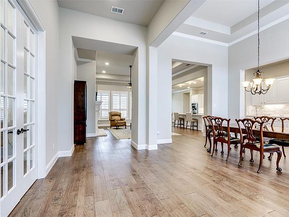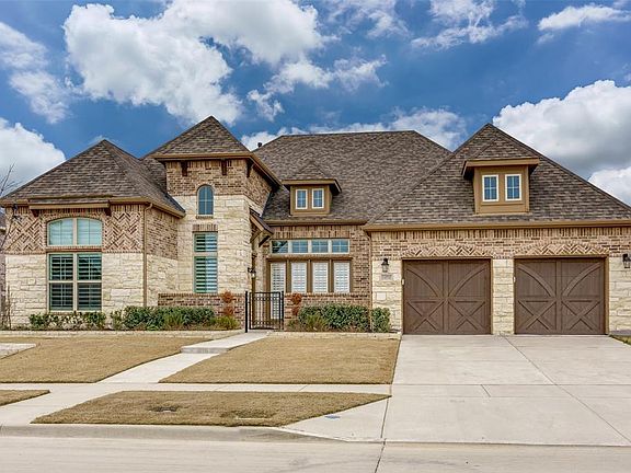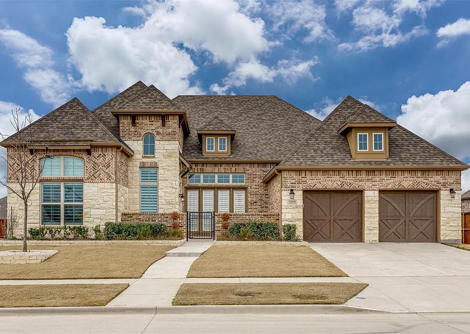 The gorgeous brick & stone front elevation, private gated courtyard, & upgraded wood door with rain glass and iron grill insert make for a great first impression of this extraordinary 1-story home. Built by Beazer Homes in 2017, it sits on a premium 80' lot in a growing Frisco community with over $80,000 in builder upgrades and shows like new. Wood floors, Plantation Shutters throughout. KitchenAid SS appliances includes 5 burner gas stove with hood, double ovens, microwave, & dishwasher. Granite CTops, walk-in pantry in Kitchen, Venetian Marble CT in Baths, Mudroom with mud bench, Built-in cabinets & sink in Laundry Rm. 3-car tandem garage. 2 tankless water heaters. Great yard and neighborhood amenities!