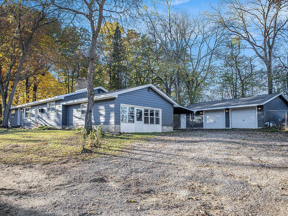 Set back off the road for true privacy, this 2,150 sq ft home is surrounded by heavily wooded acreage filled with wildlife prize deer, turkey, and more. Inside, you'll find two generous living areas, hardwood floors, main-floor laundry, and a warm, inviting family room with a wood-burning fireplace perfect for cozy gatherings. There is a small butler style knook too. You could add a second refrigerator or stove. This could be set up for aging parents to stay too! A detached 2-car garage with workshop space (potential to heat) adds room for hobbies, storage, or projects. The expansive land opens the door to endless possibilities: gardening, recreation, hunting, or even a small hobby farm. Located in the Perry School District with quick access to Lansing and I-69, this property is a rare find at this price with this much land and potential. Come see it for yourself opportunities like this don't pop up often!