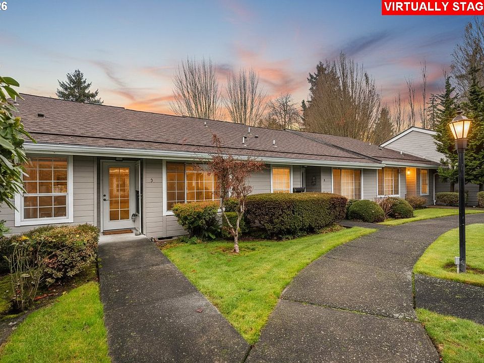 GRANDMA & GRANDPA WOULD LOVE THIS BEAVERTON CONDO!!! Beautifully Updated Village at Forest Glen 55+ Two Bedroom Cottage. Perfectly Located Overlooking The Community Pond With a Private Patio. Everything is Done, All You Need To Do Is Move In. The Interior Features a Vaulted Living Room, Gorgeous New Kitchen & Bathroom, New Carpet, LVP Flooring & Fresh Paint. Filled With Natural Light, The Spacious Primary Suite Has a Nice Walk-In Closet. Just Off The Kitchen There's Excellent Storage Space in the Laundry Room With Washer & Dryer Included. The Community Offers The Best of Active Senior Living in Beaverton. 14 Meals per Month in Dining Room or Take Out, Water/Sewer/Garbage, Basic Cable, On Site Beauty Salon, Gym, Library, Party Room. Transportation to Local Groceries, Restaurants & Monthly Outings are Available. Enjoy a Care Free Lifestyle with Gorgeous Common Area Grounds & Paved Paths Throughout the Community. All Within Minutes of the Desirable Murrayhill Area.