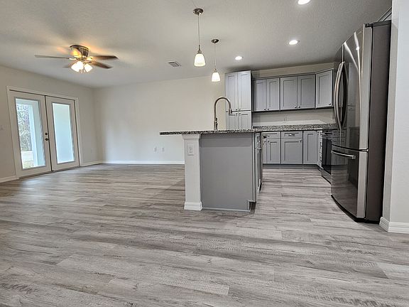 Property features numerous upgrades from LVP flooring, granite countertops, soft close real wooden cabinets, glass showers, tiled bathrooms from floor to ceiling, stainless steel appliances, washer, and dryer hookups (in its own closet out of the living space), a linen closet, and much more. There are also many ecofriendly / energy saving features from lighting, to appliances, to build features resulting in saving on monthly utilities costs. Entertaining will be a breeze with the kitchen island opening to the large great room, leading to French doors to relax on the rear covered porch and large backyard. The total living square footage of the unit is 1,341 sq ft and the grand total square footage is 1,806.