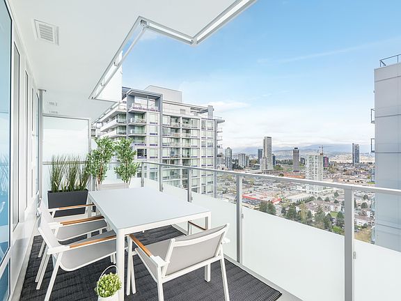 Experience Concord Living at Park George, - Move In Ready. Immerse yourself in luxurious 3 bed, 2 bath home with 2 balconies. Perfect combination of modern interior finishes including quartz countertops, Bosch appliances side by side Bloomberg washer & dryer. First class amenities such as an indoor pool, hot tub, cinema deck, sauna, steam room, fitness centre, pet spa, spin & yoga studio, sports & game lounge, & entertainment lounge. Innovative technology building features EV parking, smart thermostat and NFC common area access. Walking distance from King George SkyTrain station, Surrey Centre Mall, T&T, Fruiticana, SFU, grocery stores, and many trendy dining options, allowing for a balanced urban lifestyle. Includes 1 parking & 1 storage locker.