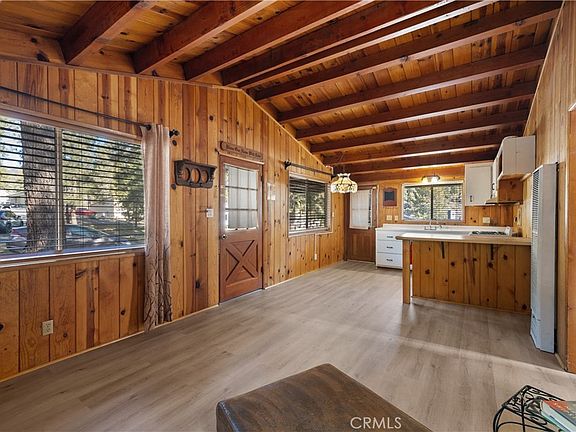 Charming 2 bedroom, 1 bath cabin nestled in the picturesque city of Wrightwood. Surrounded by towering pine trees, this cozy retreat offers a perfect blend of rustic charm and modern comfort. Enjoy the serene ambiance and breathtaking views from the spacious deck, ideal for morning coffee or stargazing nights. Inside, find a well-appointed living space with a fireplace, perfect for cozying up during chilly evenings. The fully equipped kitchen invites culinary adventures, while the comfortable bedrooms ensure a restful night's sleep. Brand new vinyl plank floors have been updated throughout the entire house, along with a new vanity in the bathroom. This property offers enough room to build an ADU to complement your lifestyle needs. Embrace the possibilities of additional living space or rental income on this spacious lot. Conveniently located near Mountain High Resort, hiking trails, and local attractions, this cabin is your gateway to adventure and relaxation in the heart of nature. Don't miss out on this rare opportunity to customize your own oasis.