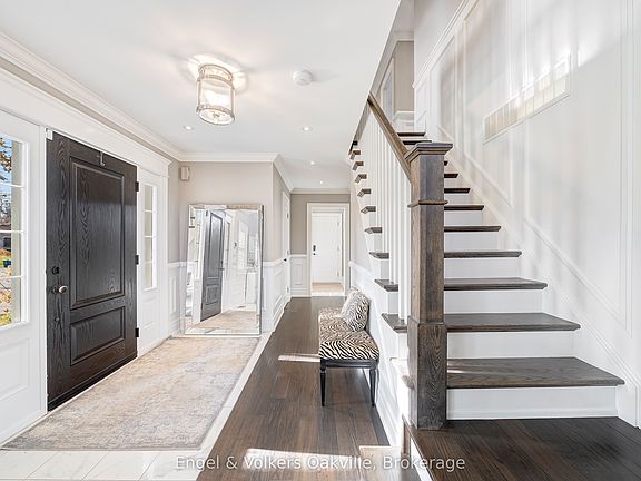 Nestled in sought-after Falgarwood, this custom-renovated home sits proudly on a premium 70 x 125 ft lot, offering a rare blend of luxury, style, and convenience. A charming covered veranda leads you into a bright foyer and an impressive open-concept layout highlighted by vaulted coffered cathedral ceilings.Every detail has been thoughtfully curated w/engineered hardwood floors, smooth ceilings, pot lights, wainscoting, and meticulous custom carpentry are showcased throughout. The chef's kitchen features a breakfast bar, built-in appliances, quartz countertops, a pot filler, and an abundance of natural light.Just a few steps down, the great room feels both elevated and cozy w/10ft ceilings, with custom built-ins and a fireplace that opens seamlessly to a second covered veranda-outdoor living overlooking an oversized private yard.The main-floor primary suite is tucked away for privacy, complete with a walk-in closet and ensuite privileges. A beautifully designed mudroom with laundry and garage access adds everyday functionality to the main level.A statement luxury staircase leads to a den nook with a custom built-in desk and storage, creating the perfect work or study space. The upper level offers three additional bedrooms and a spa-like bathroom, ideal for families.This home truly has everything the today's buyer is seeking-location, lot size, top school district, soaring ceiling heights, carpet-free living, extensive electrical upgrades, and a walk score of 10+. Follow your Dream, Home.