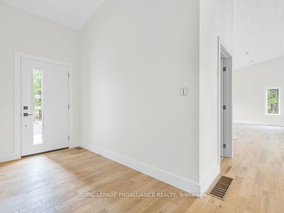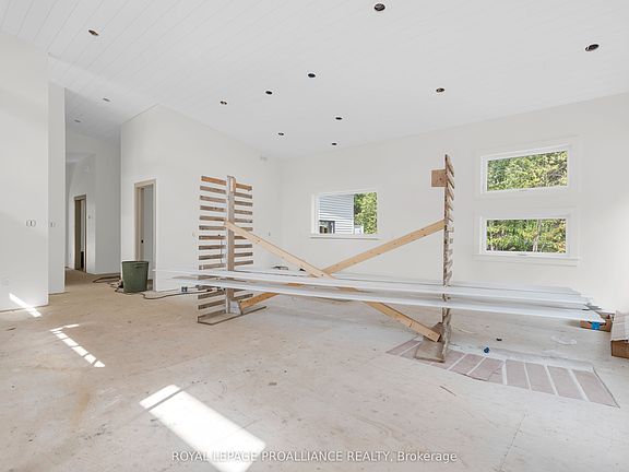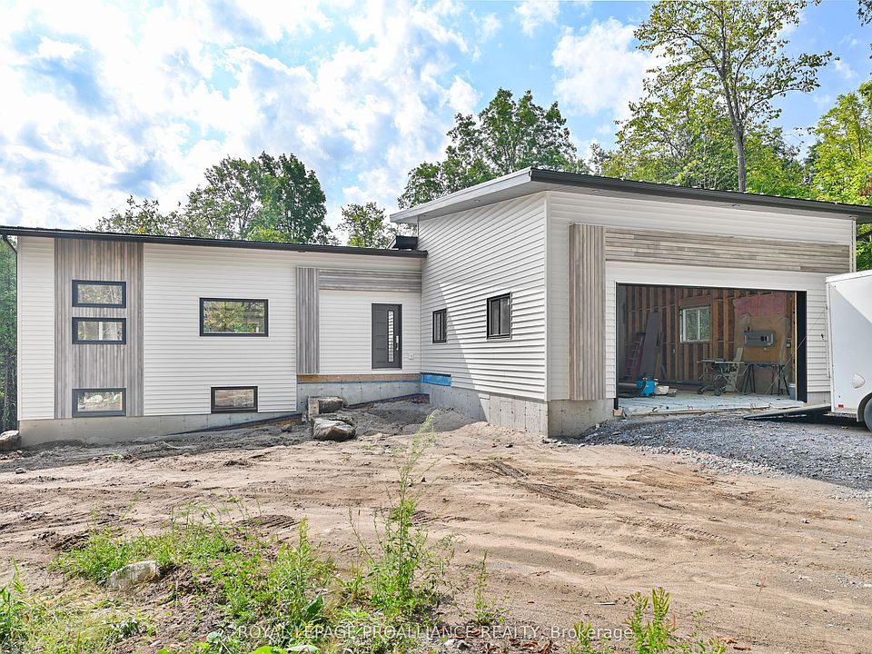 Welcome to this bright and contemporary bungalow, perfectly set on a stunning wooded 1.93 acre lot in one of the areas most sought-after neighborhood's. This brand-new build combines modern design with high-quality finishes and the peaceful charm of a private, treed setting. The home features an open-concept floor plan with soaring vaulted ceilings and beautiful hardwood flooring throughout the main level. Large windows fill the space with natural light, while the spacious living and dining areas flow seamlessly to the kitchen and out to the large covered rear deck ideal for relaxing and entertaining while surrounded by nature. Offering 2 bedrooms and 2 bathrooms (there is also a 3rd bath plumbed in the basement), including a luxurious ensuite, this home is thoughtfully designed for comfort and style. The full walkout basement provides excellent potential for additional living space, hobbies, or storage. An attached two-car garage, high-efficiency furnace, and central air conditioning ensure convenience and efficiency year-round. A rare opportunity to enjoy contemporary living in a private, wooded setting this home is nearing completion and has a full Tarion Warranty. This Modern Country Hideaway is waiting for you!