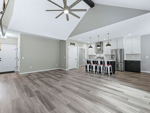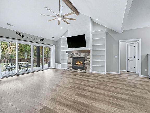Check out this well maintained and beautifully designed MBN Build. This stunning 3-bedroom, 2-bath ranch offers the perfect blend of style and comfort in every detail. The open-concept layout features a bright living room with a vaulted ceiling, built-in shelving, and a charming fireplace as the focal point. The kitchen impresses with its large center island, two-tone cabinetry, tile backsplash, stainless steel appliances, and adjacent dining area filled with natural light. The spacious primary suite includes a large closet and a private bath showcasing dual vanities and a beautifully tiled walk-in shower. Two additional bedrooms and a second full bath provide plenty of space for family or guests, and a convenient laundry area with storage adds everyday function. Enjoy outdoor living on the covered patio overlooking the expansive, fully fenced backyard that backs up to mature trees for privacy. Completing the home is an oversized 3-car garage offering ample room for vehicles, tools, or hobbies. Move-in ready and located in a desirable Fort Wayne neighborhood, this home combines thoughtful design with peaceful living. Schedule your showing today!