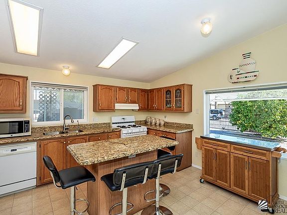 Welcome to this well-maintained Fleetwood doublewide situated on a fully fenced lot with RV access and hookups. This 2-bedroom, 2-bath home features a versatile den that can serve as an office, hobby room, or guest space. Inside, you’ll find an open and comfortable floor plan with vaulted ceilings, abundant natural light, and beautiful wood-look flooring throughout. The kitchen offers granite countertops, ample cabinetry, and a breakfast bar that opens to the living area. The primary suite includes a walk-in closet and ensuite bath with a soaking tub and separate shower. Outdoor features include a pergola, shed, citrus tree, and covered parking, all within a private, low-maintenance yard. Move-in ready, this home is a must-see!