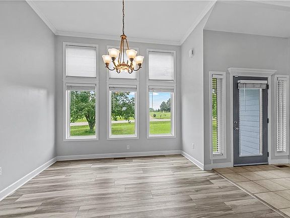 Discover modern elegance in this captivating 2-level home featuring a desirable open floor plan. Step inside and be greeted by a cozy fireplace, setting the perfect ambiance. Throughout the home, you'll find a palette of soothing grey walls complemented by crisp white trim, creating a bright and inviting atmosphere. Architectural details abound, including elegant radius windows and charming transom windows that flood the home with natural light. This residence offers versatile living spaces with a dedicated formal dining area, perfect for entertaining, and a charming kitchen nook for casual meals. The well-appointed kitchen boasts sleek stainless steel appliances and abundant windows, ensuring a bright and airy culinary experience. Enjoy seamless indoor-outdoor living with a deck conveniently located just off the kitchen, offering a serene retreat and a beautiful view that will inspire and delight. This home perfectly blends comfort, style, and functionality. Don't miss the opportunity to make this exquisite property yours!
