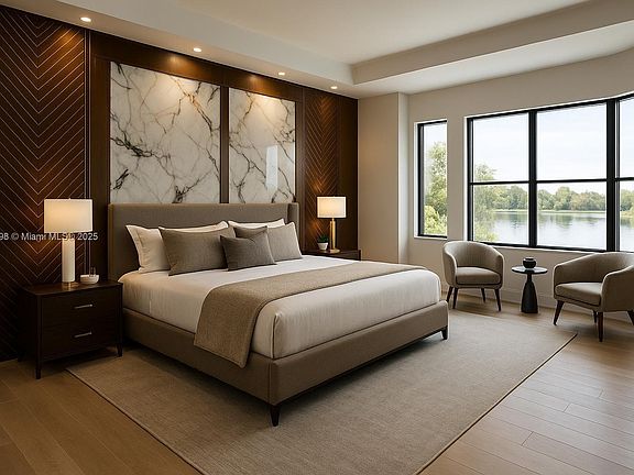 Elegant contemporary flooringBeautifully appointed outdoor kitchenHigh-end finishesPrivate saunaOverlooking the tranquil lakeMakeup mini-fridgeStunning designer vanities