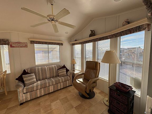 MOTIVATED SELLER on this cozy FURNISHED 1 bed/1 bath park model. Fully fenced and gated lot with a 10x20 single car garage, RV hookup and a 12x12 guest casita that's been tape, textured & tiled, with new water heater, shower, toilet, vanity/sink & fixtures. Home and casita freshly painted, refrigerator & washer/dryer only 1 year old. Heat Pump only 2 years old. New kitchen sink and faucet. This property offers a covered deck for entertaining but still leaves carport space for 1 vehicle. Enjoy mountain views to the north while on the deck and sunrises to the east! Sold furnished! See it today before it's gone!!