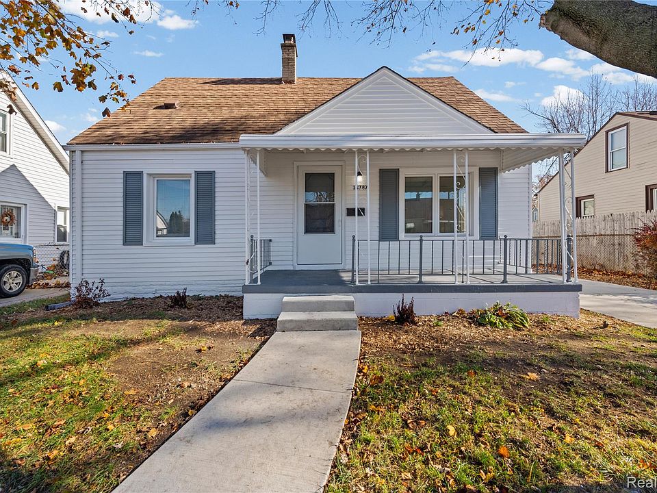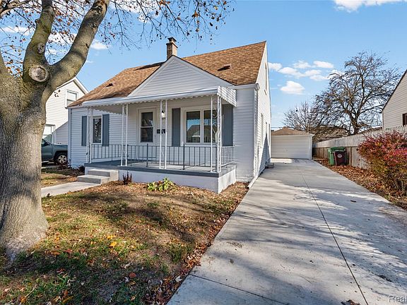 Exterior improvements include a brand-new driveway, fresh exterior paint (2025), two new storm doors, fenced backyard, and a large covered front porch ideal for relaxing. The 1.5-car detached garage with electrical offers great storage or workshop potential.