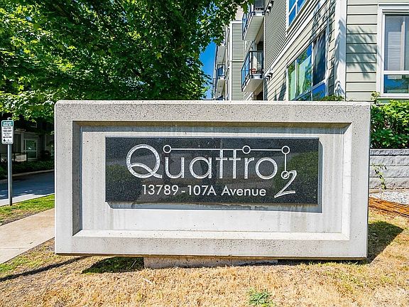 Discover modern living in this centrally located 2-bedroom, 2-bathroom condo with approx. 829 sqft of comfort. Perfect for small families or professionals, it features a sleek kitchen with stainless steel appliances and granite countertops. Enjoy a spacious covered patio, ideal for relaxing or entertaining. Its on ground floor, nobody lives below. Convenience abounds with in-suite laundry, secure underground parking, and an exercise center. Located steps from transit, shopping, daycare, and dining options, this home offers unmatched accessibility. The neighborhood is thriving with upcoming new apartment buildings, adding to its vibrant appeal. Easy access to major routes makes commuting a breeze. Your ideal home awaits at Quattro 2! Schedule your showings soon.