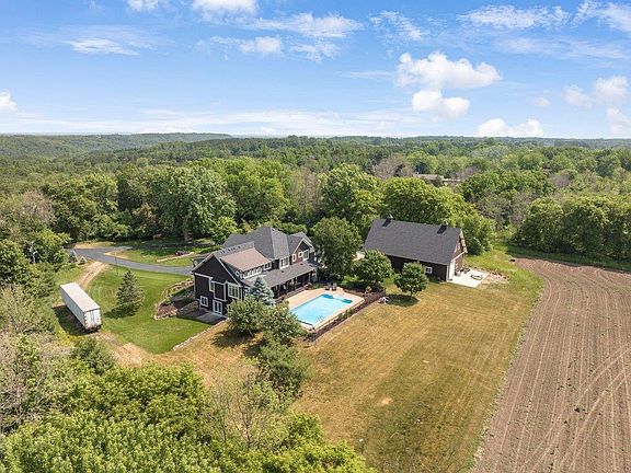 Heaven on Earth. A rare opportunity located in the highly desirable heart of central Afton. Totally secluded and private surrounded by wildlife. Wooded area with home over-looking a beautiful private meadow. The heart of this home, the kitchen-with adjoining dining and family rooms-make it ideal for gatherings. Enjoy coffee overlooking the pool while deer and their fawns frolic in the field. This exceptional property is quiet and private yet close to commerce and interstate. Keep your animals, toys and sports cars in a very large heated outbuilding. Wander, explore and play on 10.01 acres of woods and fields. This property really does offer the best of everything.